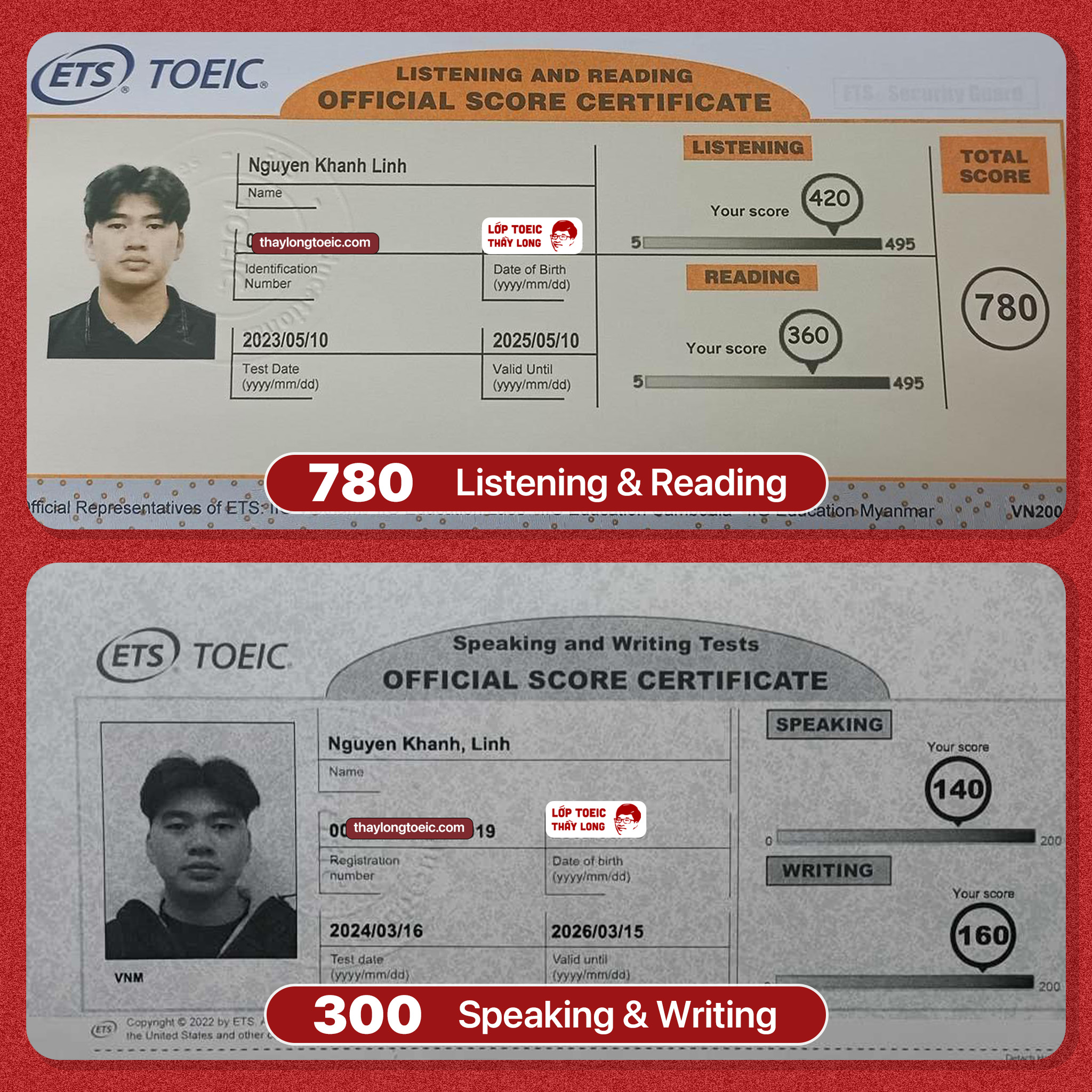Nguyen Khanh Linh 140 Speaking 160 Writing 780 TOEIC 16/03/2024