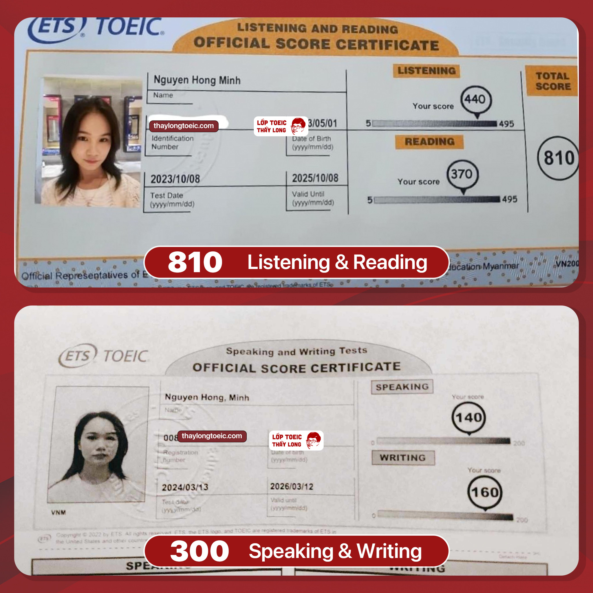 Nguyen Hong Minh 140 Speaking 160 Writing 810 TOEIC 13/03/2024