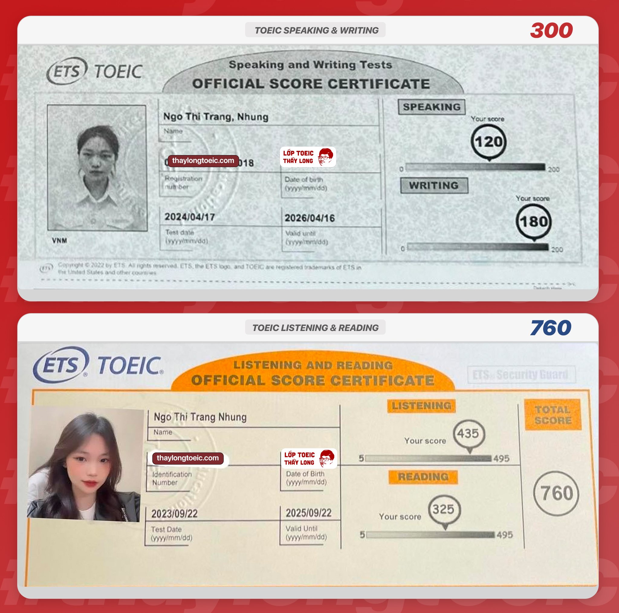 Ngo Thi Trang Nhung 120 Speaking 180 Writing 760 TOEIC 17/04/2024
