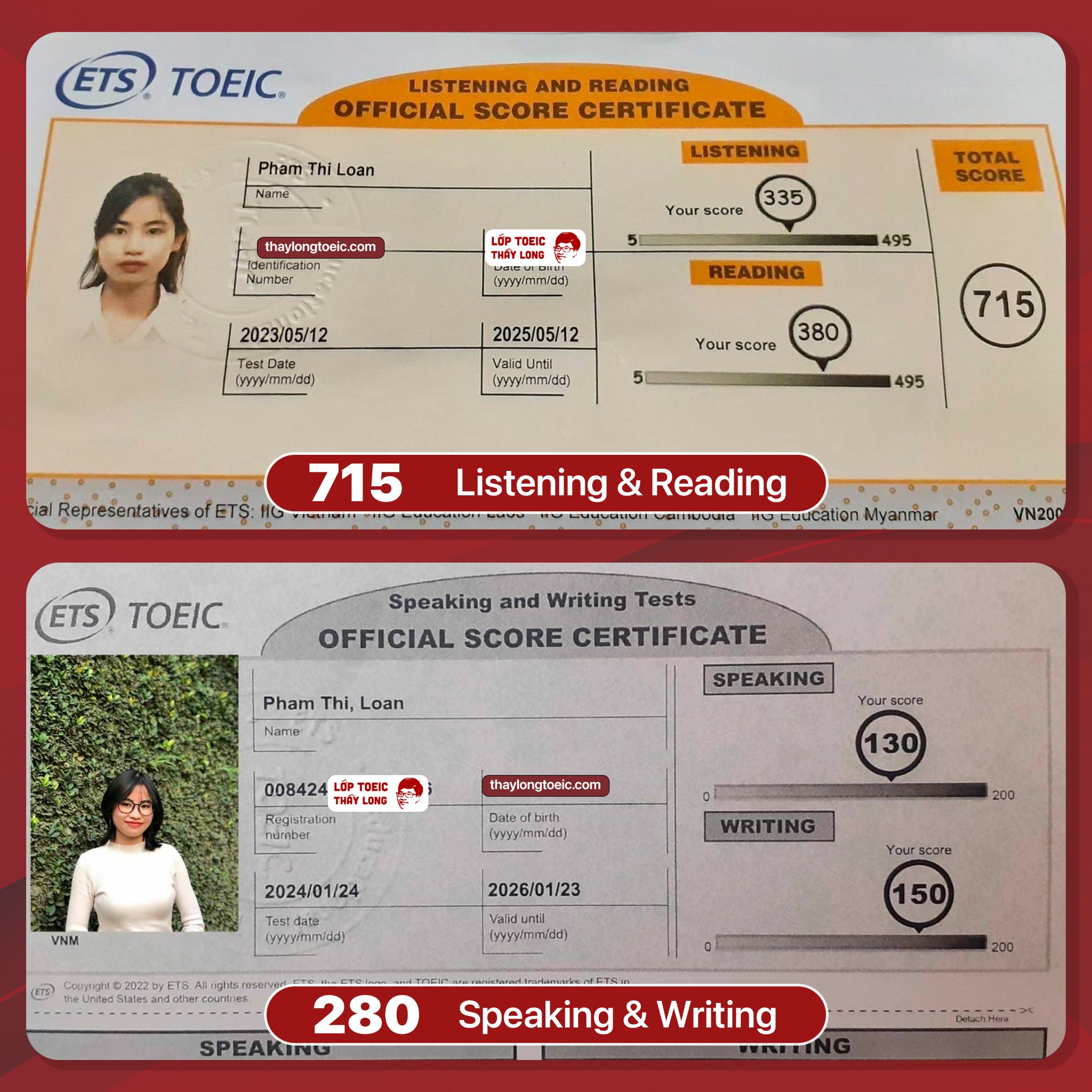 Pham Thi Loan 130 Speaking 150 Writing 715 TOEIC 24/01/2024