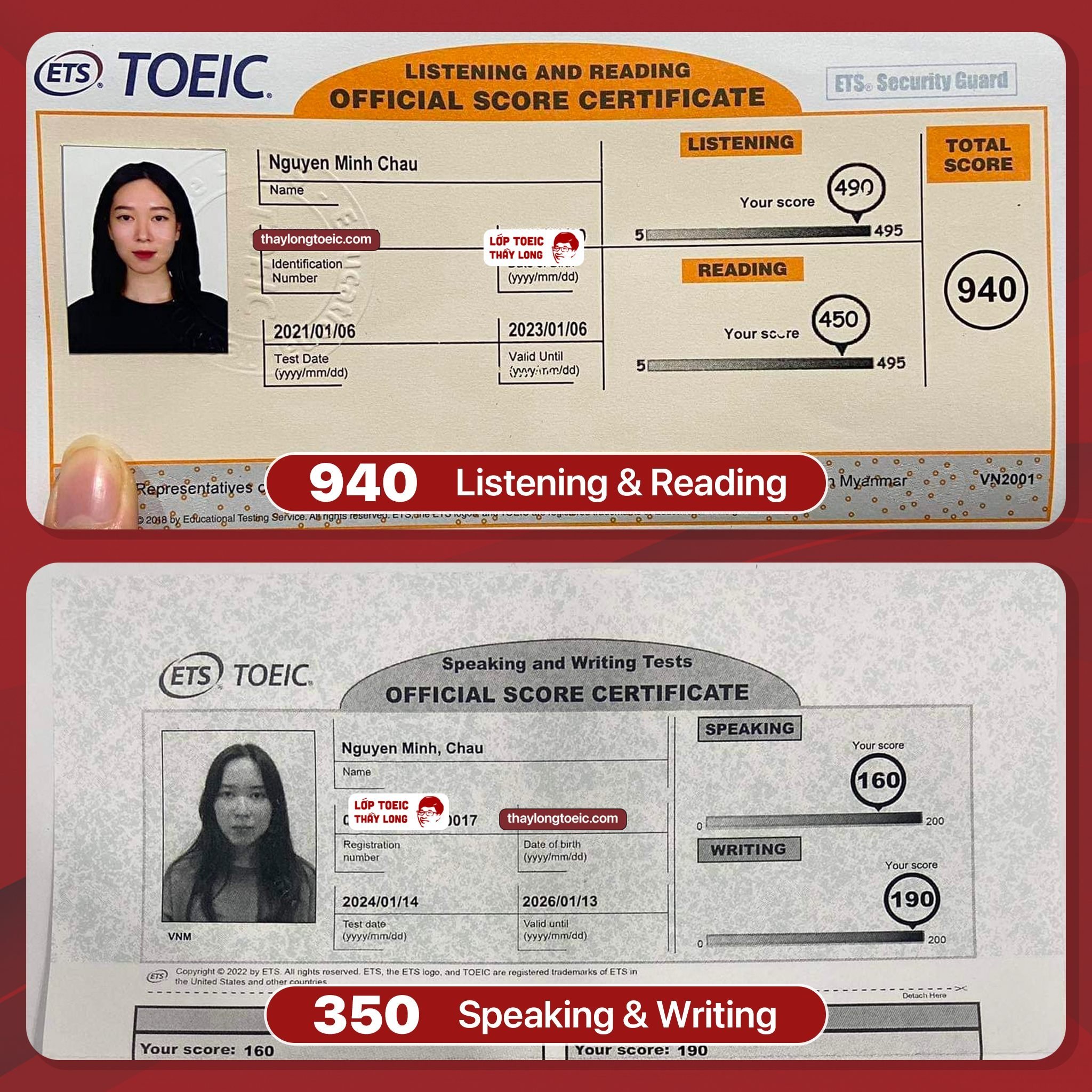 Nguyen Minh Chau 160 Speaking 190 Writing 940 TOEIC 14/01/2024
