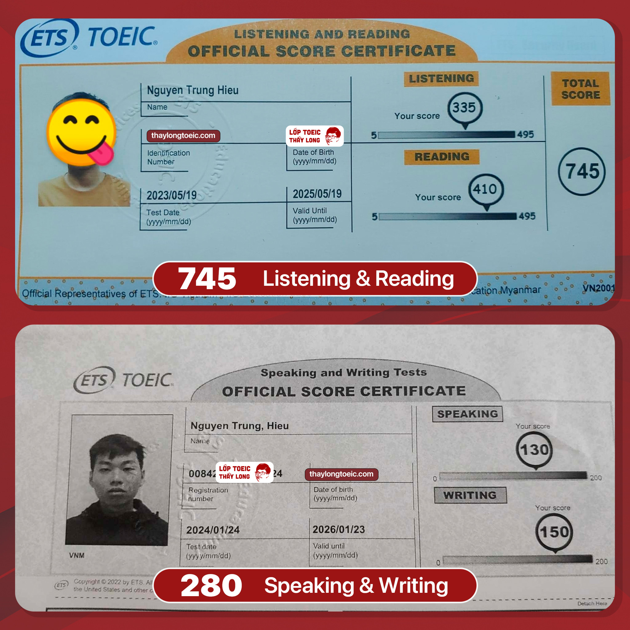 Nguyen Trung Hieu 130 Speaking 150 Writing 745 TOEIC 24/01/2024