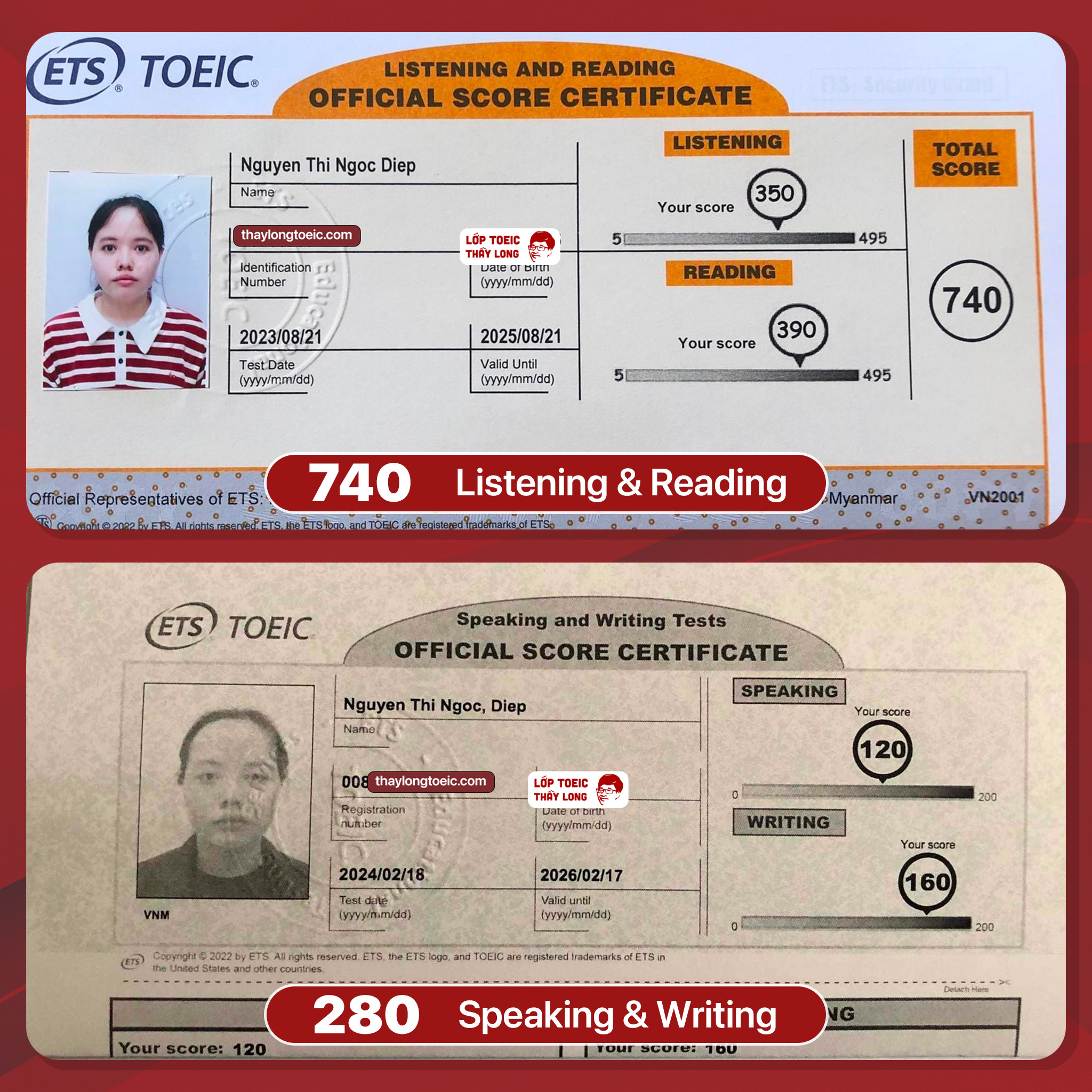 Nguyen Thi Ngoc Diep 120 Speaking 160 Writing 740 TOEIC 18/02/2024