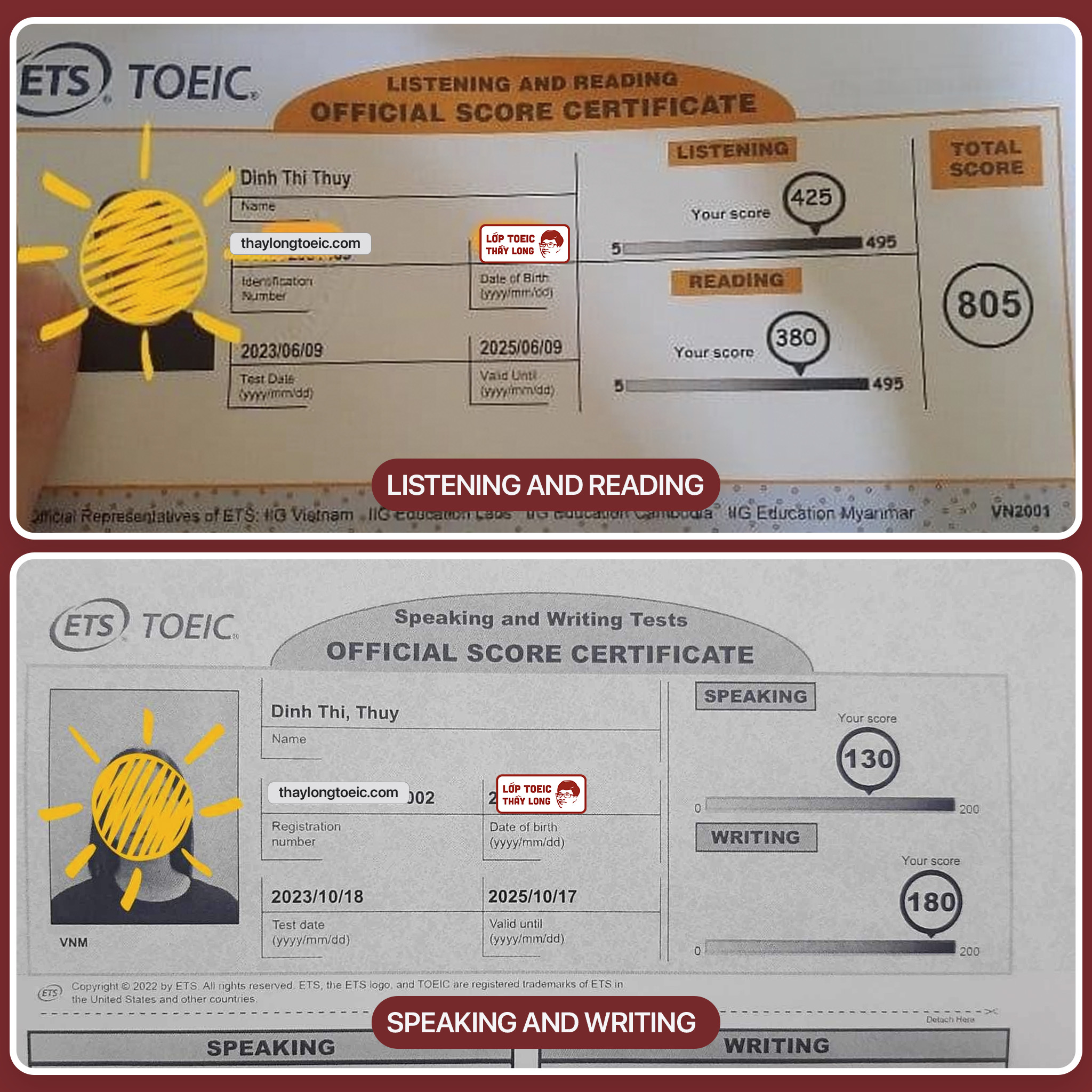 Dinh Thi Thuy 130 Speaking 180 Writing 805 TOEIC 18/10/2023