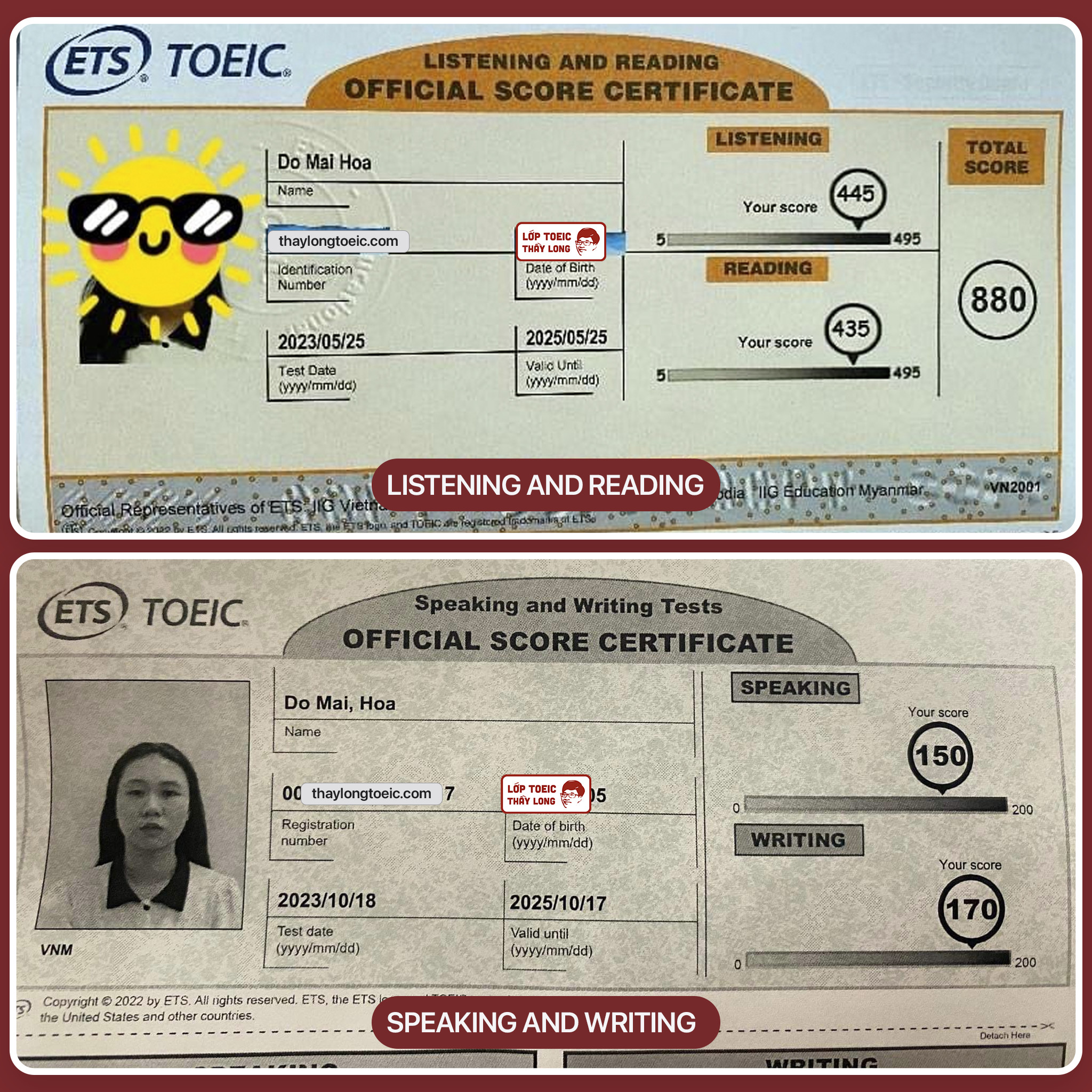 Do Mai Hoa 150 Speaking 170 Writing 880 TOEIC 18/10/2023