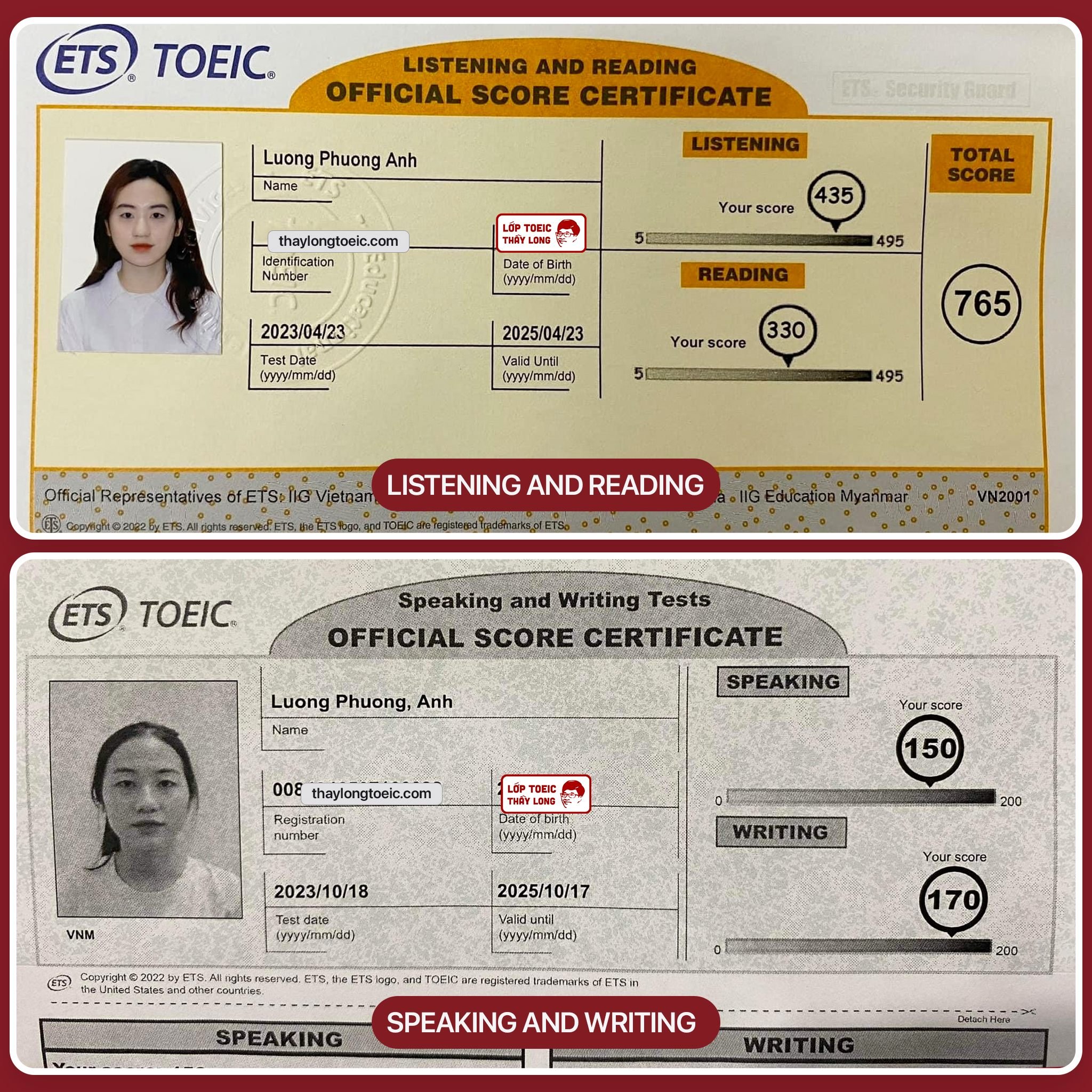 Luong Phuong Anh 150 Speaking 170 Writing 765 TOEIC 18/10/2023
