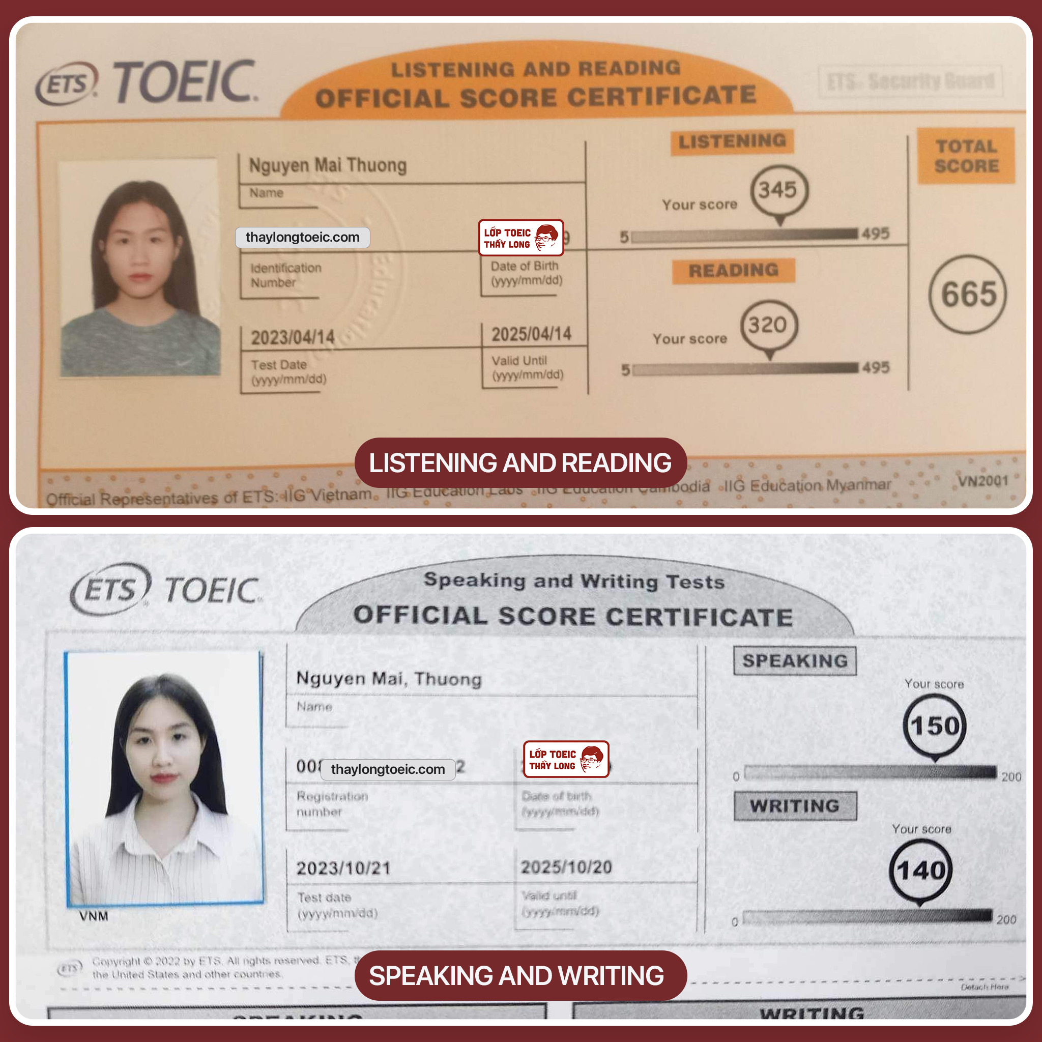 Nguyen Mai Thuong 150 Speaking 140 Writing 665 TOEIC 21/10/2023