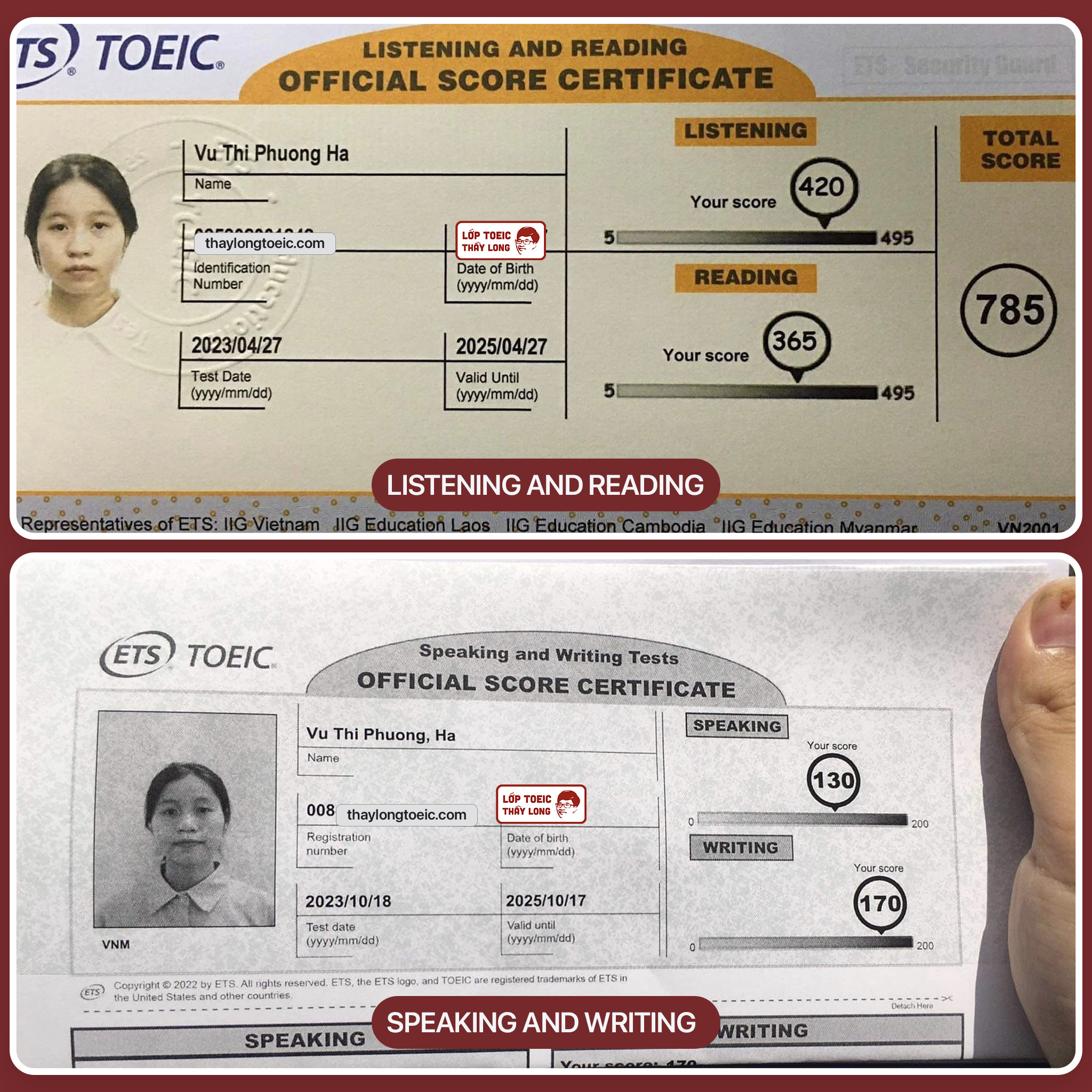 Vu Thi Phuong Ha 130 Speaking 170 Writing 785 TOEIC 18/10/2023