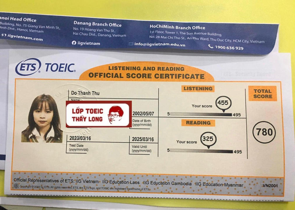 Do Thanh Thu 780 TOEIC 16/03/2023