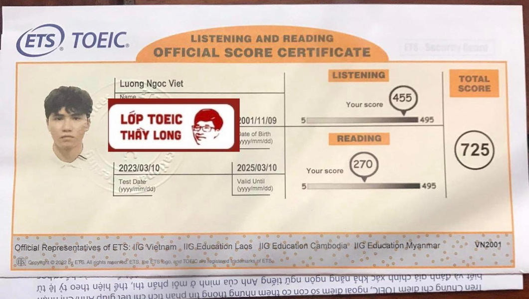 Luong Ngoc Viet 725 TOEIC 10/03/2023