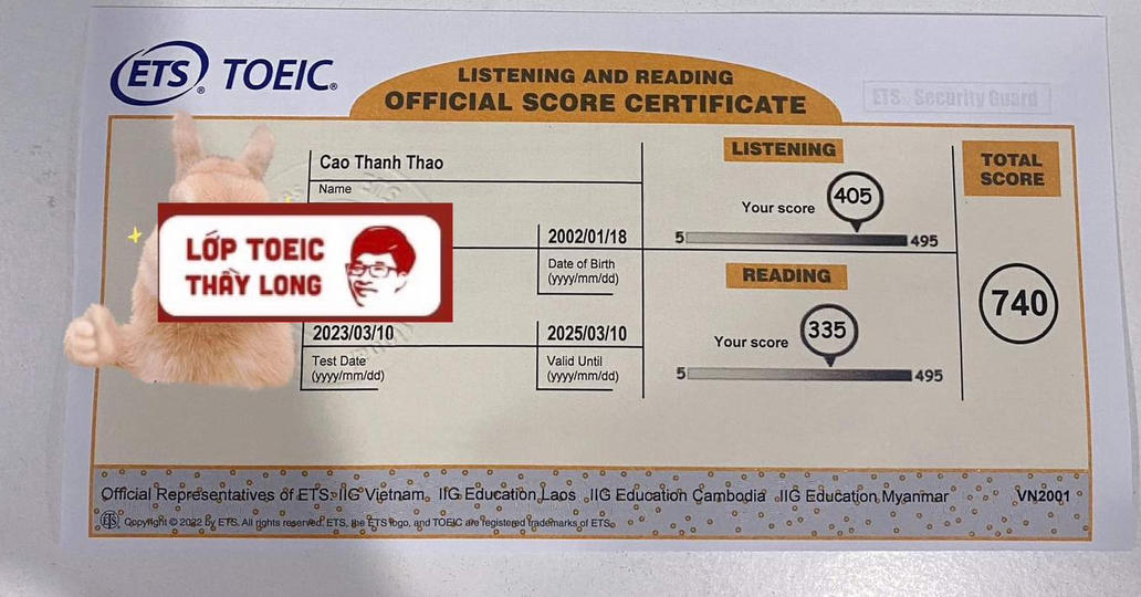 Cao Thanh Thao 740 TOEIC 10/03/2023