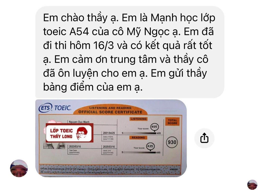 Nguyen Duc Manh 930 TOEIC 16/03/2023