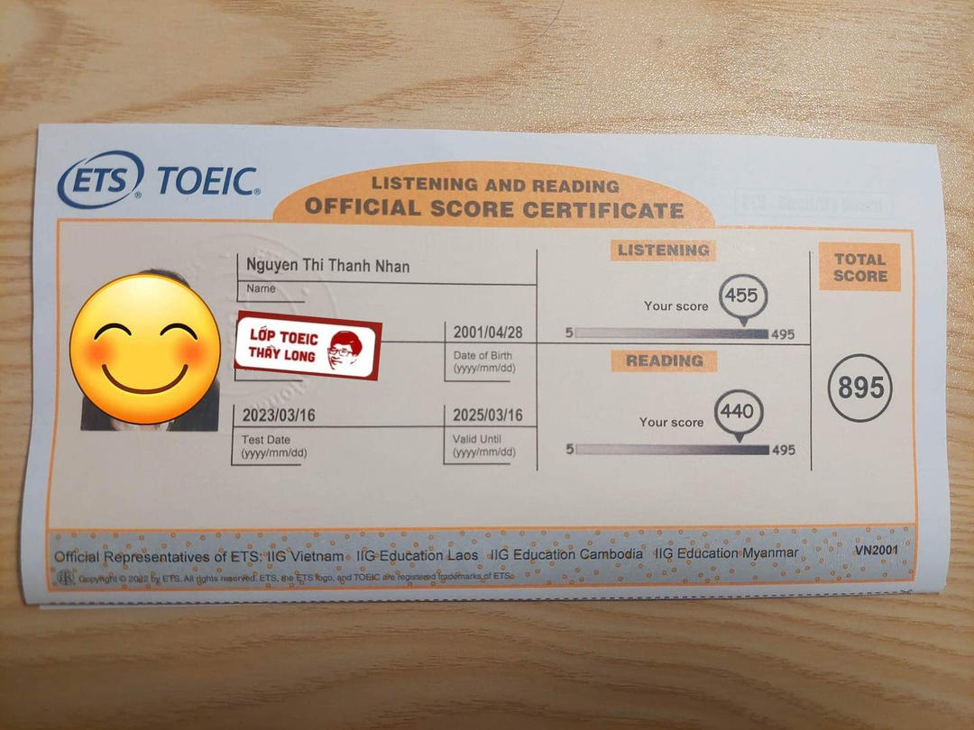 Nguyen Thi Thanh Nhan 895 TOEIC 16/03/2023