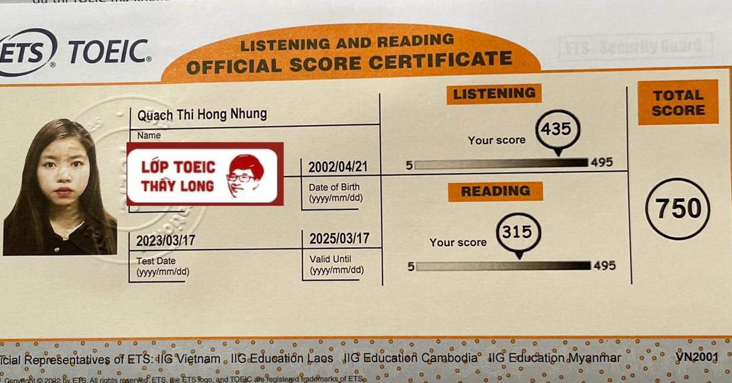 Quach Thi Hong Nhung 750 TOEIC 17/03/2023