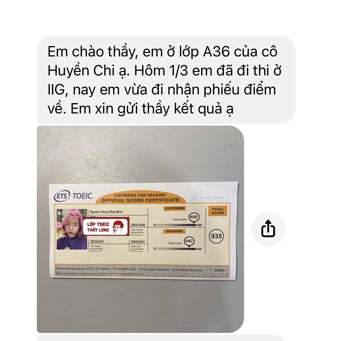 Nguyen Hong Nhat Minh 935 TOEIC 01/03/2023