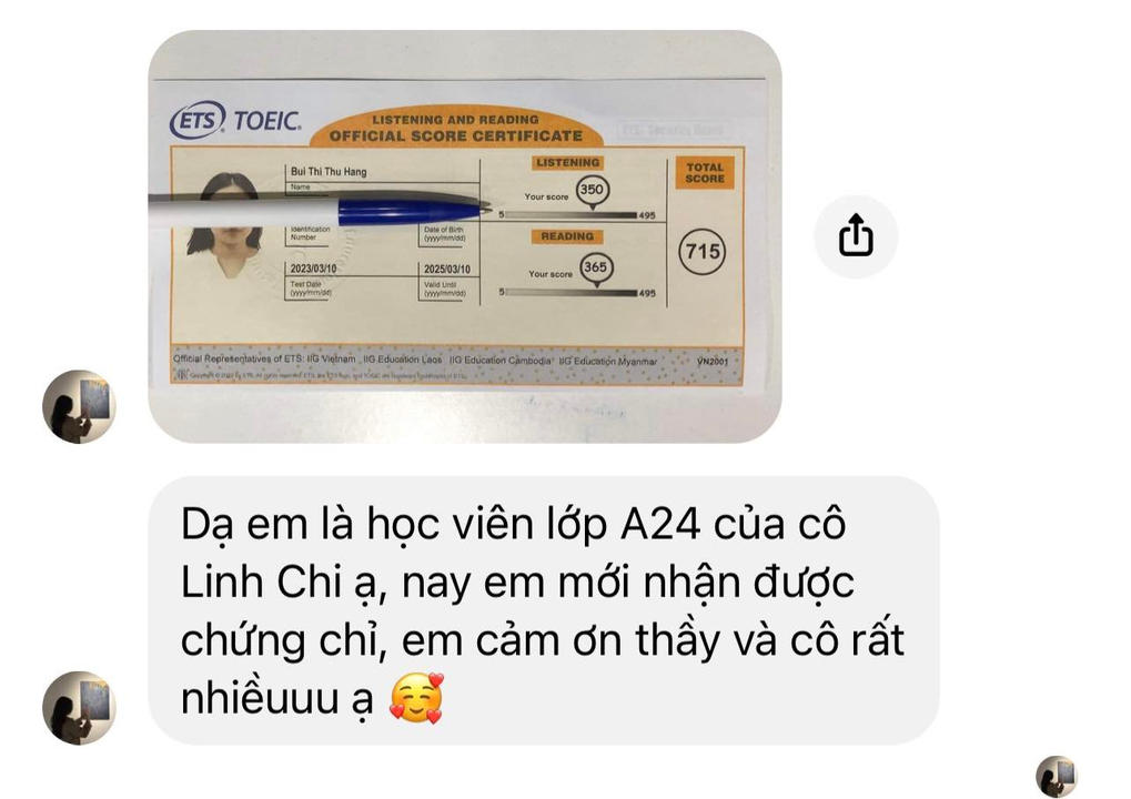 Dao Khanh Linh 700 TOEIC 06/03/2023