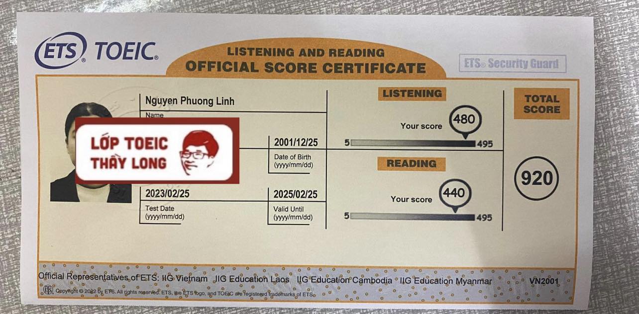 Nguyen Phuong Linh 920 TOEIC 25/02/2023