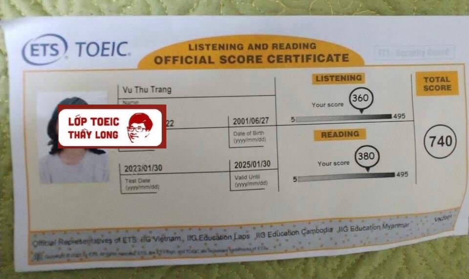 Vu Thu Trang 740 TOEIC 30/01/2023