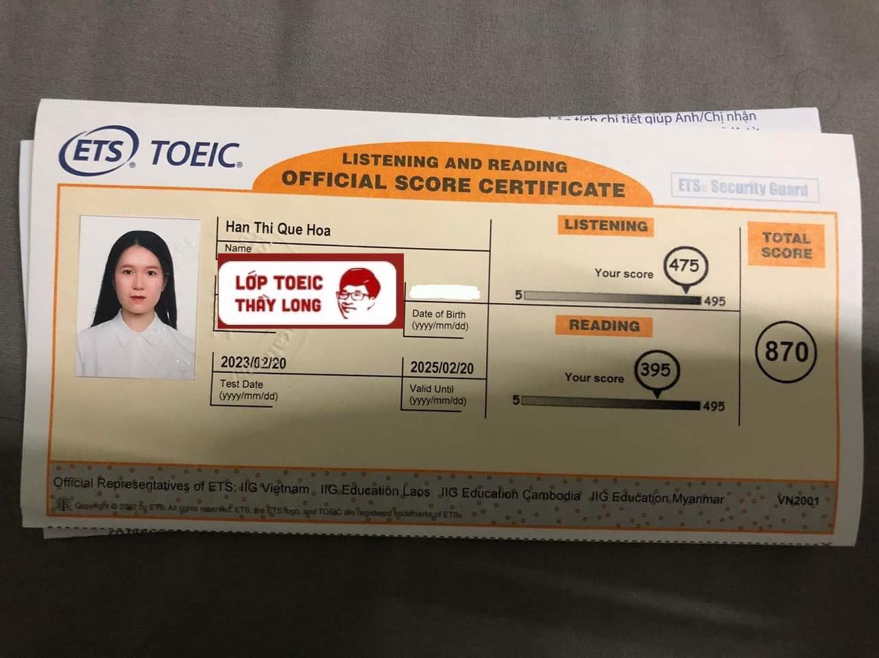 Han Thi Que Hoa 870 TOEIC 20/02/2023