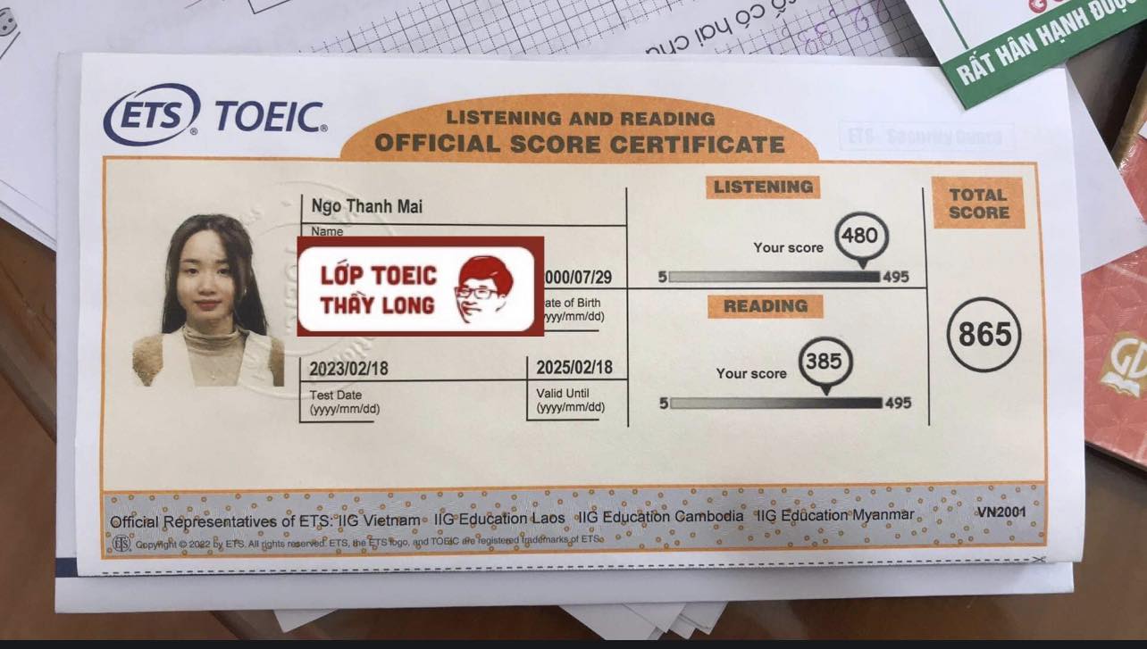 Ngo Thanh Mai 865 TOEIC 18/02/2023