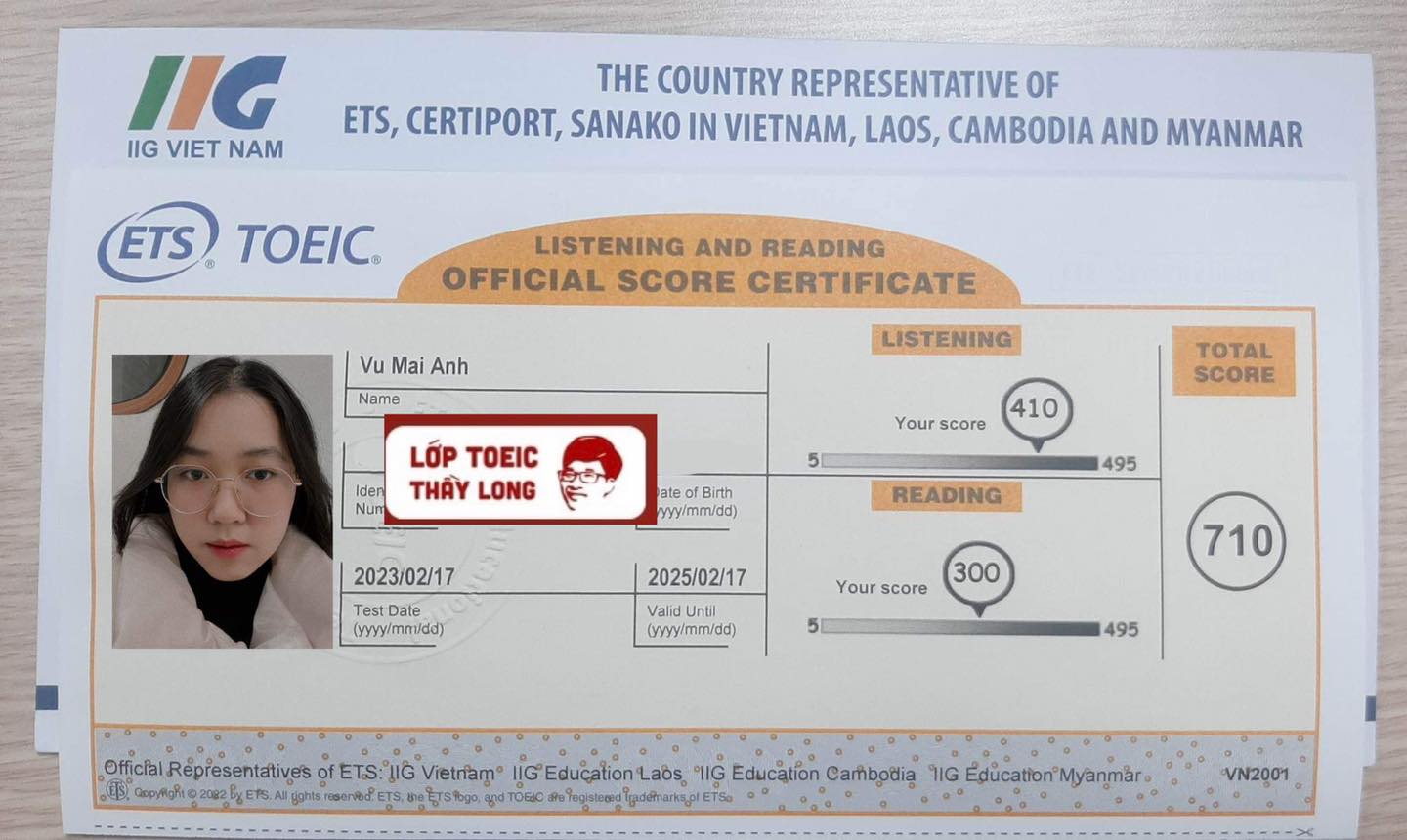 Vu Mai Anh 710 TOEIC 17/02/2023