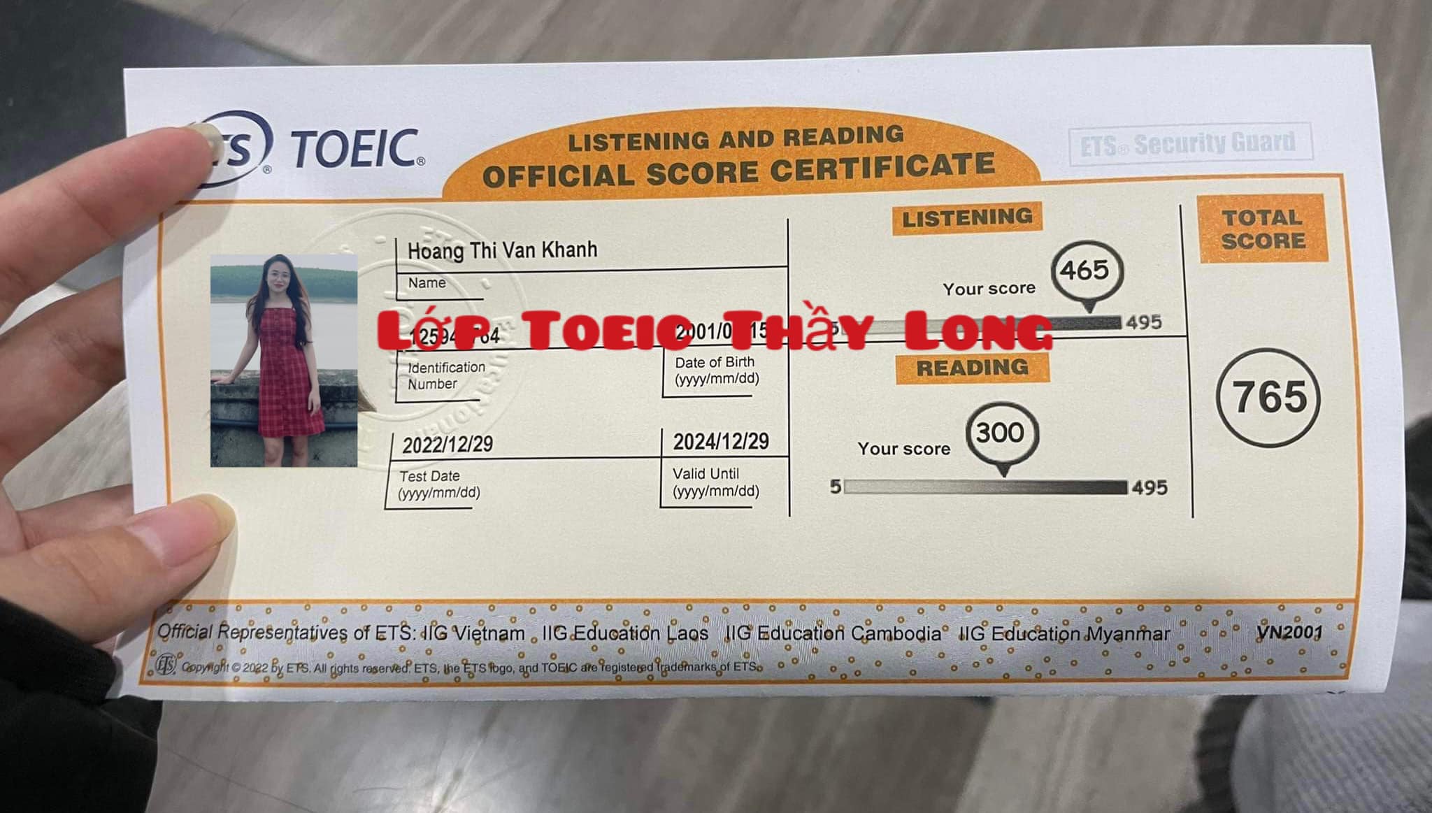 Hoang Thi Van Khanh 765 TOEIC 29/12/2022