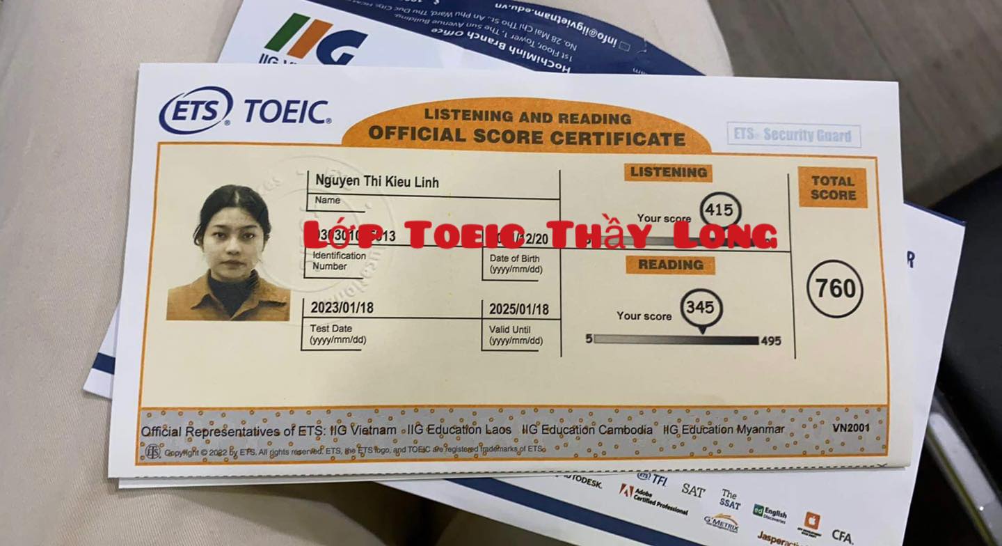 Nguyễn Thị Kiều Linh 760 Điểm TOEIC 18/01/2023