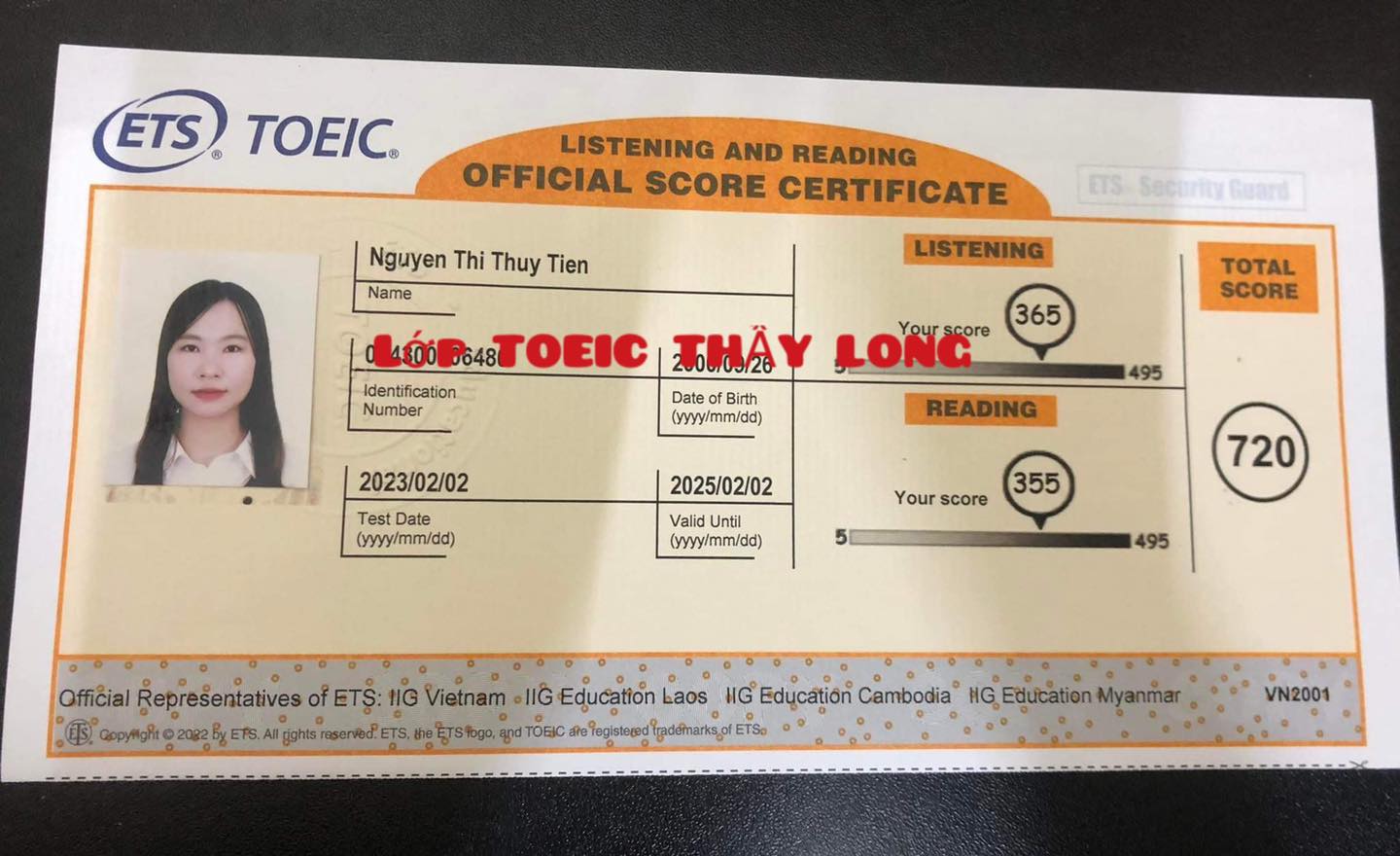 Nguyen Thi Thuy Tien 720 TOEIC 02/02/20223