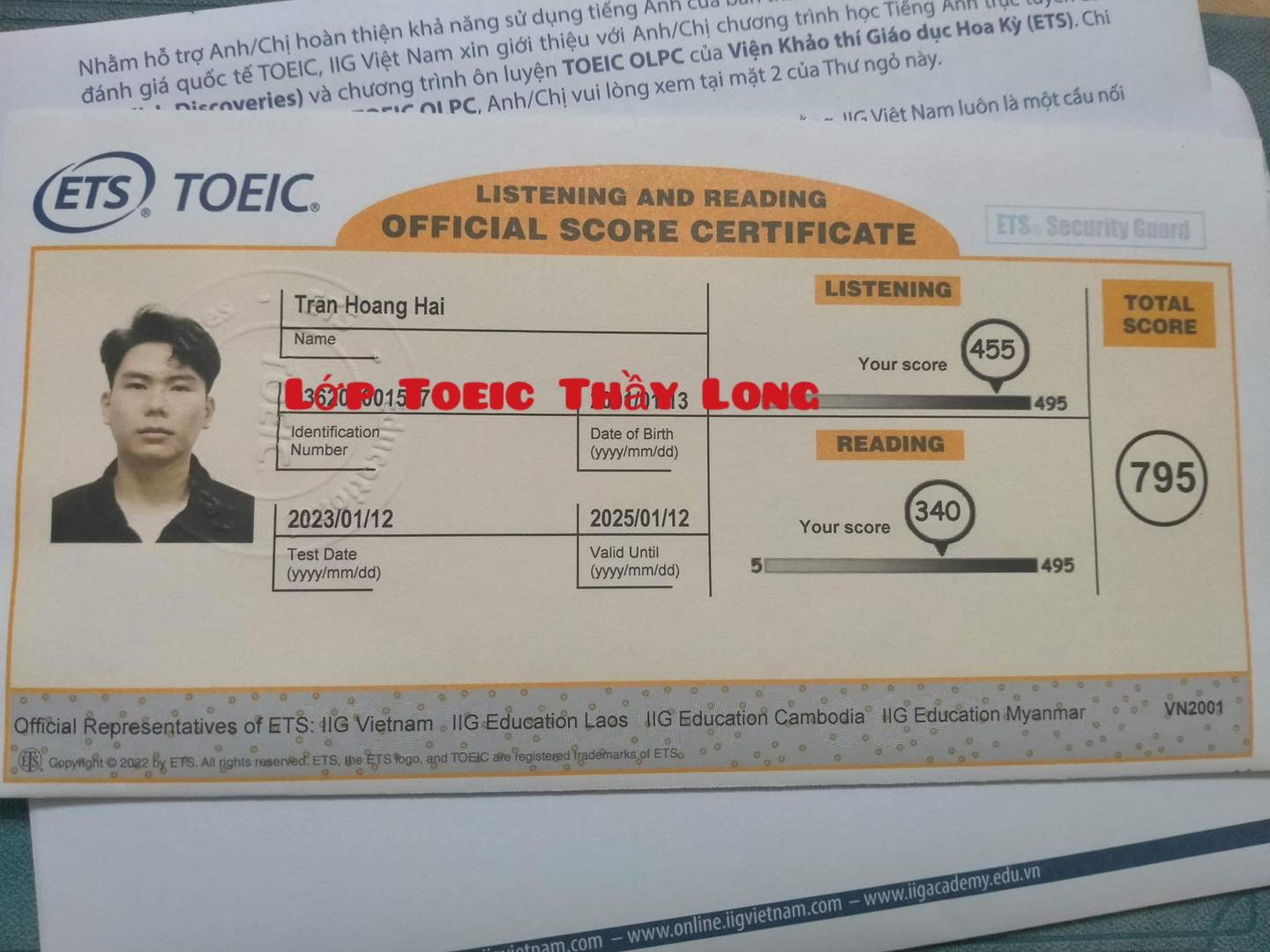 Trần Hoàng Hải 795 TOEIC 12/01/2023