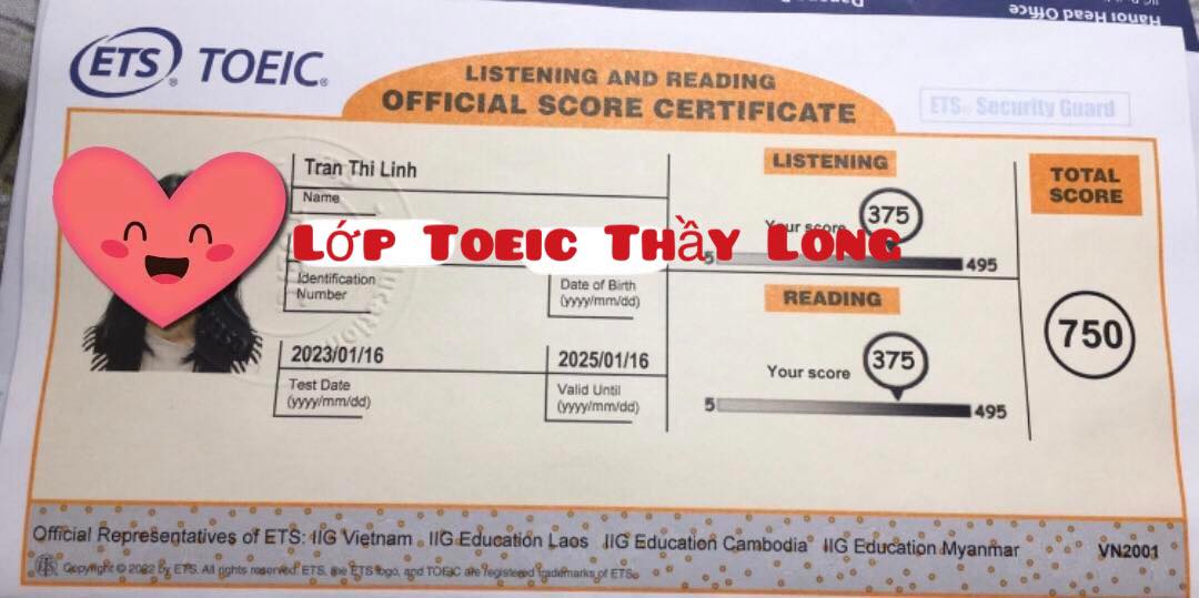 Trần Thị Linh 750 Điểm TOEIC 16.01.2023