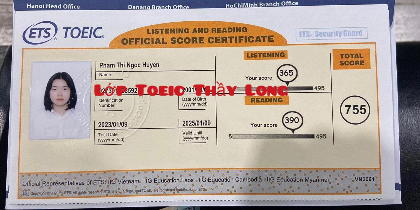 Phạm Thị Ngọc Huyền 755 TOEIC 09/01/2023