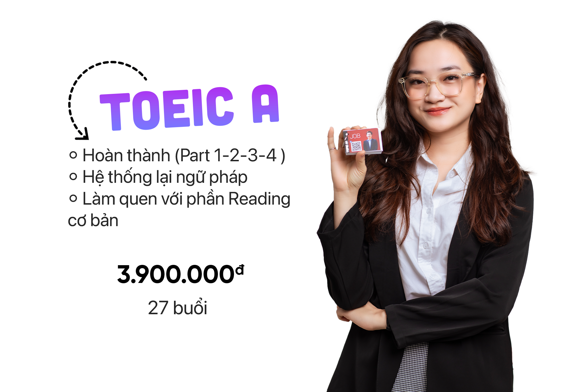 Bộ đôi khóa học TOEIC A + TOEIC SW giúp bạn củng cố kỹ năng Nghe – Đọc, đồng thời phát triển khả năng Nói – Viết theo chuẩn thi thật. Lộ trình phù hợp cho học viên có nền tảng, muốn đạt 550+ TOEIC LR và 240+ TOEIC SW trong thời gian ngắn.