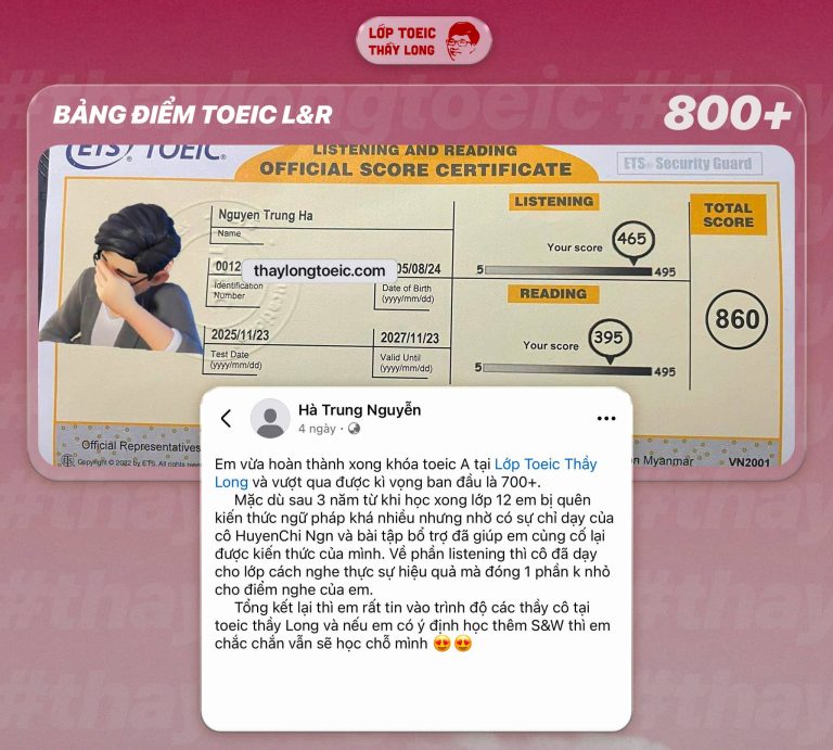TOEIC A240 | Tối 2-4-6 | 18h-19h30 | 16/1 | Ms. Minh Hạnh | Lê Đức Thọ |