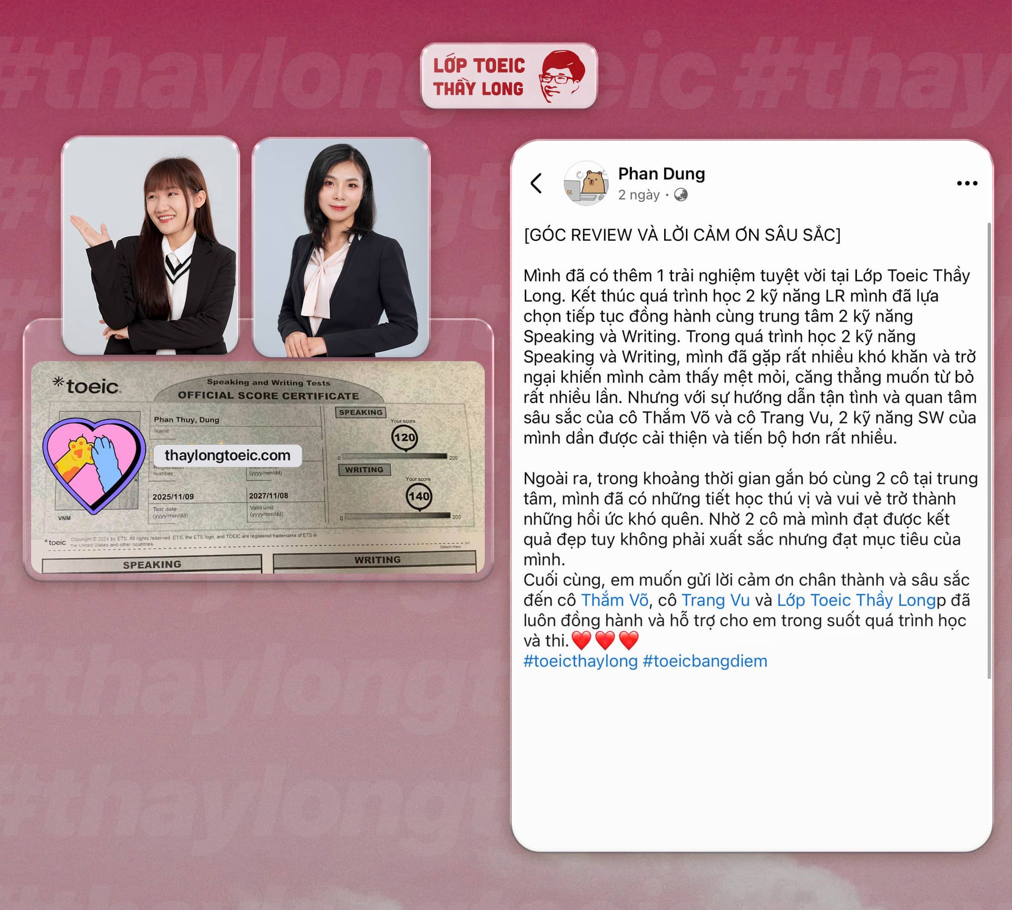 - Với các bạn đạt tối thiểu 120-120 mỗi kỹ năng nói viết sẽ được hỗ trợ 1.300.000 sau khi viết review.